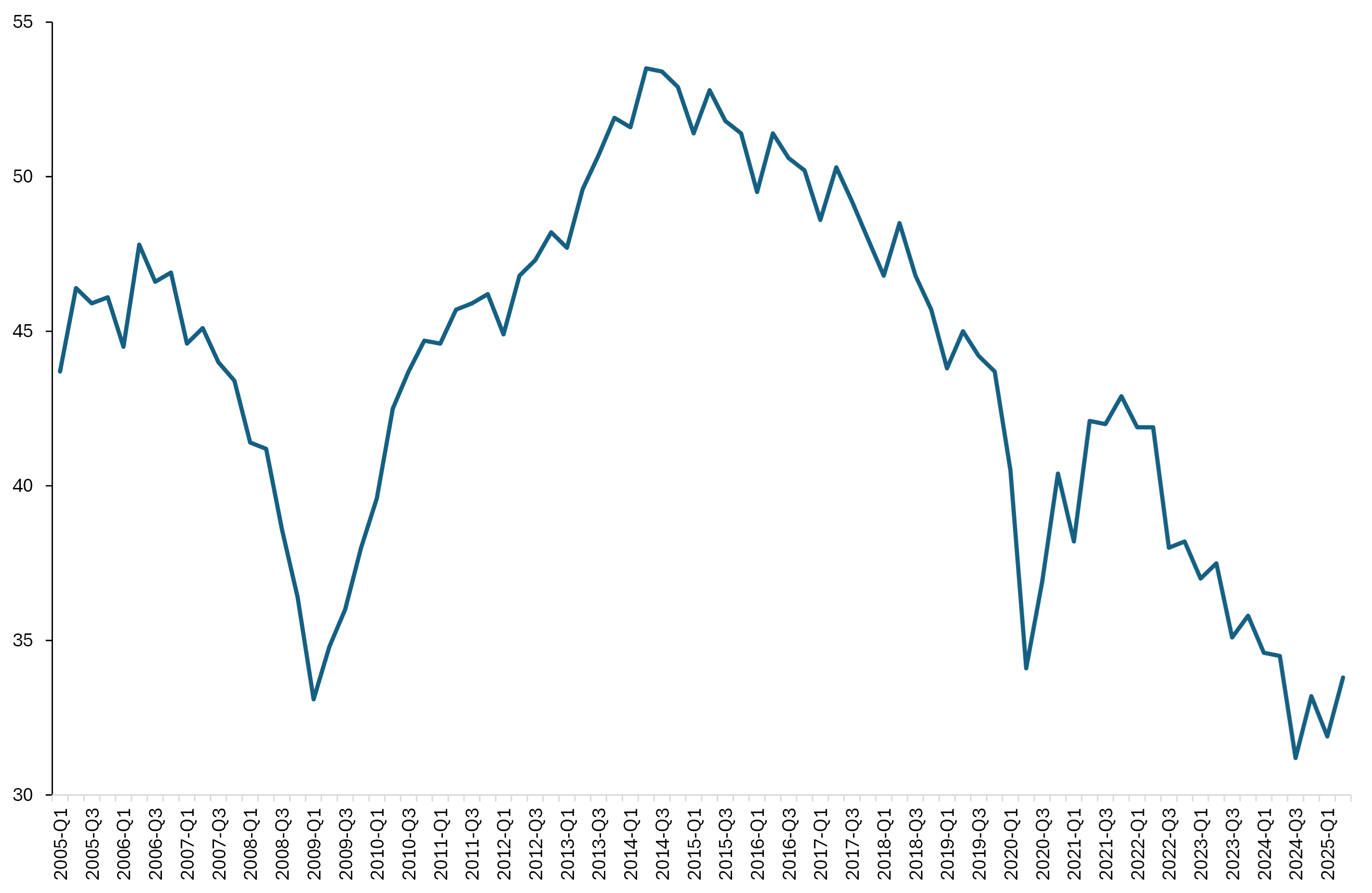 The same evidence can be obtained from the vacancy rate data. Vacancies available fell initially with COVID, but they recovered quickly staying above pre-pandemics since then (Figure 8).