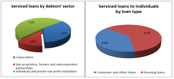 The nominal value of serviced corporate loans increased to €28,176 million in the fourth quarter of 2025, from €27,584 million in the previous quarter. In further detail, the nominal value of loans to non-financial corporations (NFCs) increased by €593 million to €28,146 million at the end of the fourth quarter of 2025. Out of the total of these loans to NFCs, an amount of €10,137 million corresponds to loans to small and medium-sized enterprises (SMEs).
