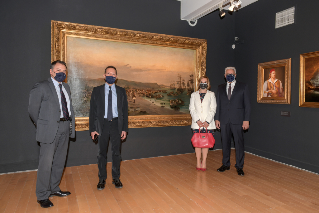 Ο Διοικητής της Τράπεζας της Ελλάδος Γιάννης Στουρνάρας, ο Υποδιοικητής Θεόδωρος Κ. Πελαγίδης και η Υποδιοικήτρια Χριστίνα Παπακωνσταντίνου επισκέφθηκαν χθες το Μουσείο Μπενάκη στο Κτήριο της οδού Πειραιώς και ξεναγήθηκαν στην μεγάλη επετειακή έκθεση «1821 Πριν και Μετά», που διοργανώνει το Μουσείο με τη σύμπραξη της Τράπεζας της Ελλάδος, της Εθνικής Τράπεζας και της Alpha Bank. Τον Διοικητή και τους Υποδιοικητές υποδέχθηκε η Πρόεδρος της Διοικητικής Επιτροπής του Μουσείου Ειρήνη Γερουλάνου. Η ξενάγηση πραγματοποιήθηκε από τους επιμελητές της έκθεσης Μαρία Δημητριάδου και Τάσο Σακελλαρόπουλο.