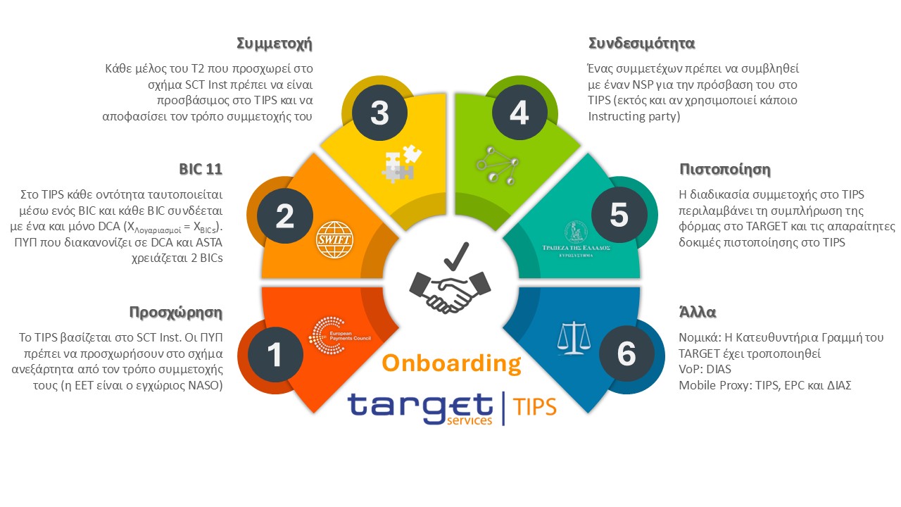 Το Νοέμβριο του 2018 το Ευρωσύστημα έθεσε σε λειτουργία την υπηρεσία TIPS (TARGET Instant Payment Settlement), προκειμένου να ικανοποιήσει την αυξανόμενη ζήτηση για άμεσες πληρωμές σε ευρωπαϊκό επίπεδο και να αντιμετωπίσει την επικράτηση εθνικών λύσεων που επέφεραν κατακερματισμό των υπηρεσιών πληρωμών στην Ευρώπη.